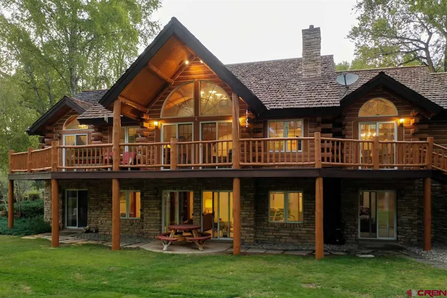 An Island on an island! The river truly runs through it! One of the most desirable locations in the Gunnison Valley! This gorgeous 3,914 square foot log home offers something for everyone, including private fishing off your deck in the Gunnison River and enjoying wildlife from your front door, such as, deer, fox & water fowl. The interior of the home has an open concept with vaulted ceilings, amazing views and wonderful natural light out of every window. This one of a kind home features five bedrooms, three and a half bathrooms. It has a spacious living room area with a cozy wood stove, a separate dining area, open eat-in kitchen with island for entertaining, and large laundry room. The main floor master is a masterpiece in itself with a private seating area, and a sliding door to your lovely deck to listen to the relaxing sounds of the river. It also includes an ensuite 5 pieces bathroom with jetted tub. As you walk up the beautiful wood staircase, youll enjoy 2 more spacious bedrooms with a shared bathroom. In the lower level there are two more bedrooms with a walkout through sliding doors to the beautiful backyard . The family room/ game room, includes a pool table that is yours to keep with the house! This natural log home is situated on one of the largest home sites in the area with 2.33 Acres. The exterior is amazing, with a multi-level wrap-around deck with more views! The hot tub overlooks the beautiful flowing river. There is also a serene pond with a private beach area surrounded by a lush landscaped yard with mature shade trees, such as Cottonwood, Pine, and Aspen. You can cast your fishing line from your balcony table or from the hot tub! This home also offers extra storage, which includes about 700 square feet in the unfinished basement and a 300 sq. ft. shed for additional outside storage. This is a fabulous one of a kind home. With its location on the Gunnison River with its wonderful fishing, and the Los Rios Golf course nearby its time to come enjoy this little slice of heaven!