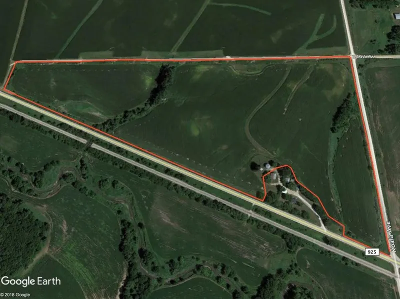 Guthrie County Iowa tillable farm for sale. Approximately 44 m/l acres (subject to survey) with 41.57 in crop production. CSR2 in the 62 range. Has blacktop frontage with gavel on east boundary and level 2 road as the north boundary. The farm is in a corn/bean rotation. Waterways are seeded. Two grain bins go with this tract of land. This is a nice laying farm and has been well cared for. For complete details call or tex Donnie McClellan at 816-752-8880