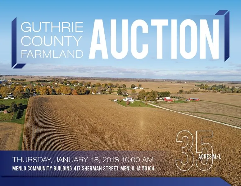 Offering 35 acres m/l of Guthrie County farmland located immediately east of Menlo, Iowa. Farm includes approximately 31.93 FSA tillable acres carrying a CSR2 of 75.1. High quality soil types include Sharpsburg, Colo-Judson and Judson silty clay loam. The property is located in Section 27 & 26 of Beaver Township in Guthrie County, Iowa. With roughly 11 acres m/l on the west side of the property incorporated into Menlo City Limits, there is an excellent building site opportunity with quick access to Interstate 80 and the Des Moines Metro. Grain markets are close with options between Flint Hills Ethanol Plant located one half mile to the east and a wide variety of grain elevators to utilize as well. This farm would be a great add-on unit to an existing operation, affordable purchase for a Beginning Farmer / Investor, or potential to be purchased in an IRA or 401K. The farm lease has been terminated and will be available for the 2018 crop season. Tile has been installed on the farm but maps showing location are unavailable.