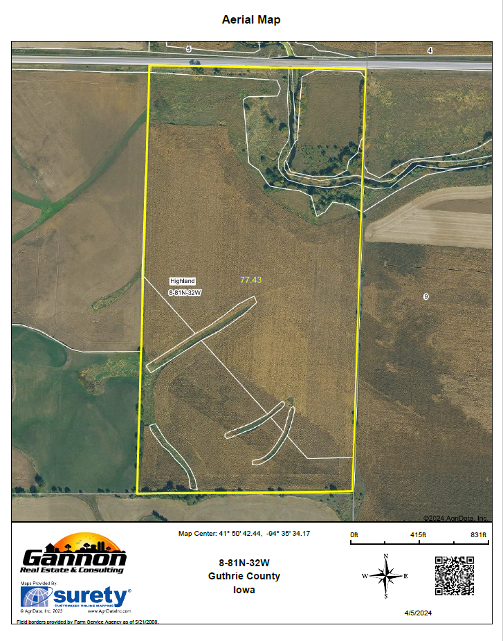 Disclaimer: All field boundaries are presumed to be accurate according to the best available information and knowledge of the Sellers and Gannon Real Estate & Consulting. Overall tract acres, tillable acres, etc. may vary from figures stated within marketing material. Buyer should perform his/her own investigation of the property prior to bidding at the auction. The brief legal description in the marketing material should not be used in legal documents. Full legal descriptions will be taken from the survey and abstract. Please do not drive on the property in wet conditions. Anyone that accesses the property assumes all liability for this access and damage to the property they cause.