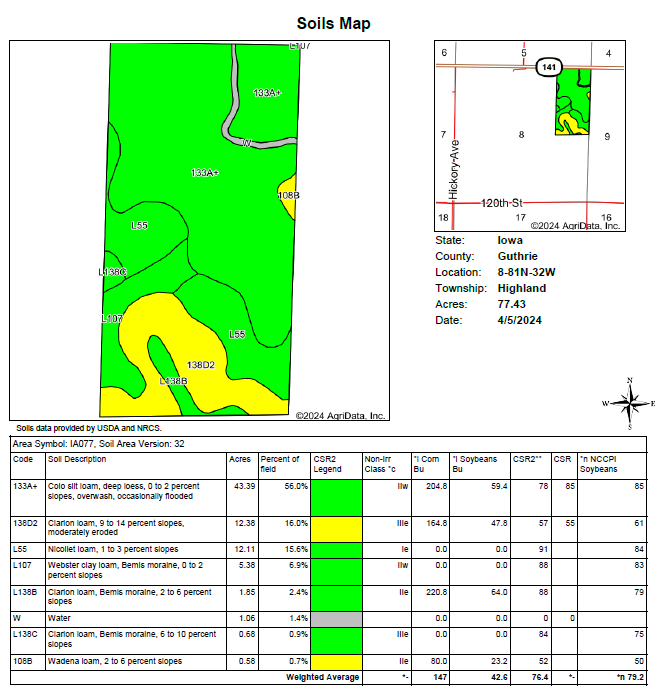 Online Only Auction 77.43 acres, m/l, Guthrie County, Iowa