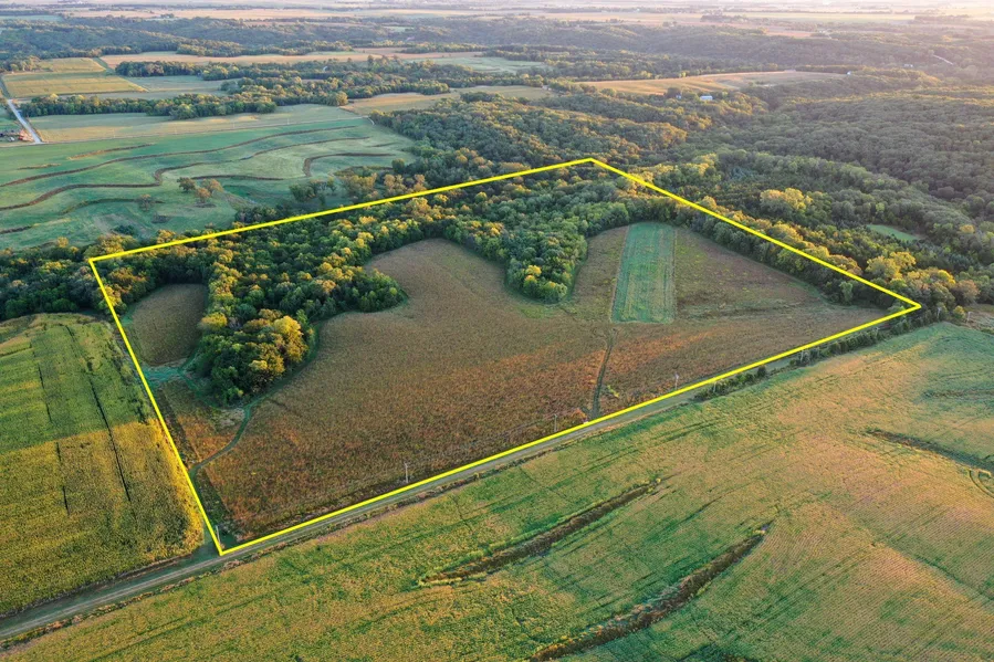 - The balance of the farm consists of an East/West running drainage and mature hardwood timber. This drainage is a major travel corridor from a large neighboring stand of timber to the agricultural fields to the west