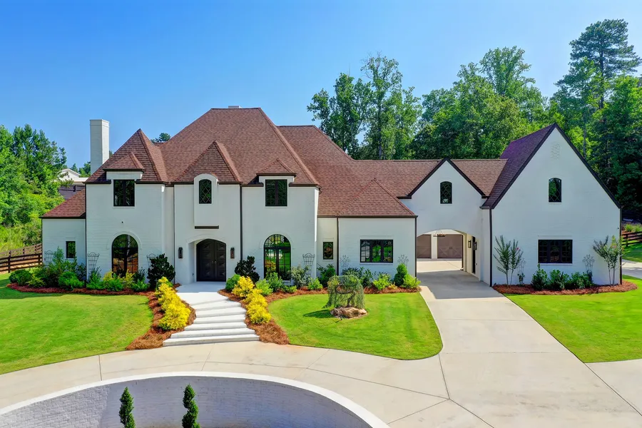 Welcome to this French modern masterpiece that boasts of warmth and timeless dcor. Perfection abounds both inside and out of this picturesque property. A privacy, double entry gate, welcomes you into this 2.68 +/- acre property while beautifully sculpted landscape leads you to this custom-built, stately home. This stunning, one-of-a-kind home first impresses with tall ceilings and intricate details in every room. The grand foyer showcases gorgeous vaulted ceilings and is flanked by the impeccable formal dining room. The wood-paneled cigar or library room will capture your moments of relaxation. You can not miss the colossal windows throughout the home that compliments the exquisite chandeliers in every room. Both cozy and spacious, the (double sided) fireside family room is flooded with natural light. At the heart of the home, you will find the chefs kitchen with top-of-the-line appliances, including a state of the art, ILVE Majestic Duel Fuel natural gas range, gorgeous quartzite countertops , a large kitchen island, sun-lit breakfast nook and views into the living room and gorgeous resort style backyard. This space is ideal for large gatherings and entertaining. Relax and unwind in the primary suite, ideally nestled on the main level. Some of the incredible features of the master bath include a true spa-inspired bathroom, Essential oil tub - steam room, and a his or hers spacious size closets. Imported cast iron, handmade balusters will lead you upstairs, showcasing four spacious en-suite bedrooms that shows unique details in every corner! The grand Porte-cochere is an in-law, teenager, or guest suites dream! Consistent with the perfection of flow from the main estate, this guesthouse incudes ample space, washer and dryer and luxury kitchen with a walk in pantry. Outside, enjoy the exceptional, serene pool and spa with waterfall features with fire specs complimenting the center brick, fireplace. This estate could also serve as a Helipad for personal use. The beautiful Lake Lanier is minutes away. A canvas to partake as your own. Discover true beauty far beyond the ordinary at this spectacular residence where luxury is redefined.