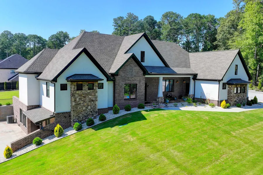 Step into luxury with this state-of-the-art, custom built masterpiece nestled on over an acre of meticulously landscaped grounds, beyond two private gates, ensuring utmost privacy and prestige. Boasting over 4,000 square feet of living space, this immaculate residence epitomizes refined living. As you enter through the striking grand iron door, you're greeted by a gorgeous entrance foyer that sets the tone for the entire home. No expense was spared in this custom estate, evident in every detail from the premium finishes to the impeccable design. The residence features four large en-suite bedrooms, including two master bedrooms, and offering ample space for family and guests alike. An exquisite executive office provides a sophisticated workspace, while the six-car spacious garages can double as a gym or extra living space, complete with a separate electric panel, perfect for an in-law suite or guest home. Inside, hardwood floors complement the soaring 12' wood beam ceilings, creating an atmosphere of warmth and elegance. The open floor plan seamlessly connects the living spaces, including the gourmet chef's kitchen, which is equipped with state-of-the-art appliances, quartz countertops, and custom-made cabinets. The butler’s pantry and convenient prep kitchen ensure effortless entertaining. The principal suite is a sanctuary of luxury, featuring a lavish master bath with heated floors, a boutique-style walk-in closet, and a zero-level walk-in shower with a heated seat. A gorgeous soaking tub and fireplace add to the ambiance, creating a retreat-like experience. Convenience meets luxury on the main level with a large laundry room boasting ample storage. Indulge in luxury living with this spacious, brand-new basement, designed to elevate your lifestyle. Featuring daylight windows that flood the space with natural light, this basement offers a seamless blend of comfort and sophistication. Adjacent to the fabulous kitchen, the living area provides a welcoming space to relax. Whether you're gathering with family for movie night or hosting friends for a soirée, this versatile area can accommodate all your entertainment needs. A bedroom with a full bath offers a private sanctuary, complete with all the comforts you desire. For the ultimate relaxation experience, indulge in the custom-built sauna, where you can unwind and destress in the comfort of your own home. Whether you're seeking a space to entertain, in-law suite, or a teenager's dream, this brand-new basement offers everything you need and more. Outside, the backyard is a blank canvas awaiting your personal touch. Flat and pool-ready, it offers endless possibilities for outdoor entertaining, with an outdoor kitchen and cozy fireplace. A drip system and cedar raised beds allow for farm-to-table cooking, providing fresh vegetables right at your fingertips. Welcome home to unparalleled luxury and sophistication.