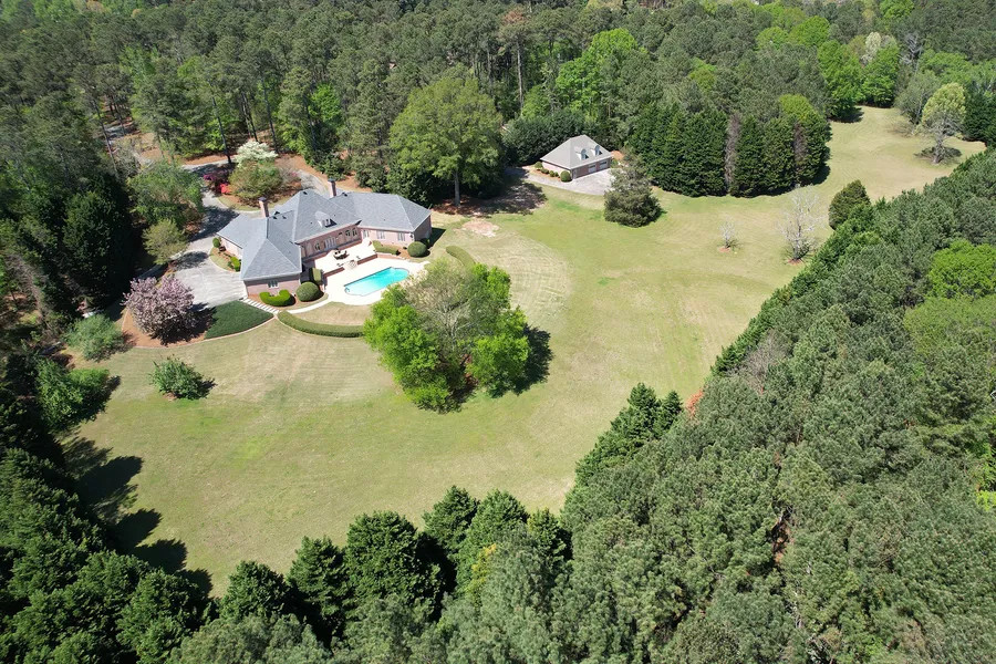 Privacy, acreage, space, and the highest level of construction are just a few of the high points of this 22+/- acre estate. The perfectly manicured grounds mimic some of the finest golf courses, with a few golf pros having visited the property throughout the years. The property is completely tree-lined and fenced so you experience absolute privacy while being close to it all. The perfect backdrop to all your events with a gorgeous and meticulously maintained pool, party patio, and small orchard fit with peach, pear, persimmon, and pecan trees. The house itself was built to last generations, the highest level of care and love has been given to its construction and continued maintenance. The main level is comprised of both a formal and informal living area, spacious dining room, light-filled breakfast room, sunroom, pool room, gym, dedicated laundry room, two bedrooms with adjoining bathroom suites, and a private, primary wing with double closets and exquisite primary bath suite with separate walk-in shower and self-heating tub. Upstairs, you'll find spacious bedrooms with their own bathroom suites, another gym space, rec room, and gobs of walk-in storage. The main house has a spacious and clean three-car garage and the detached garage space boasts another two parking spots and an unfinished loft that would be perfect for a home office, au pair suite, in-law suite, craft room, or teenager hang out. This home awaits its loving, new owners!