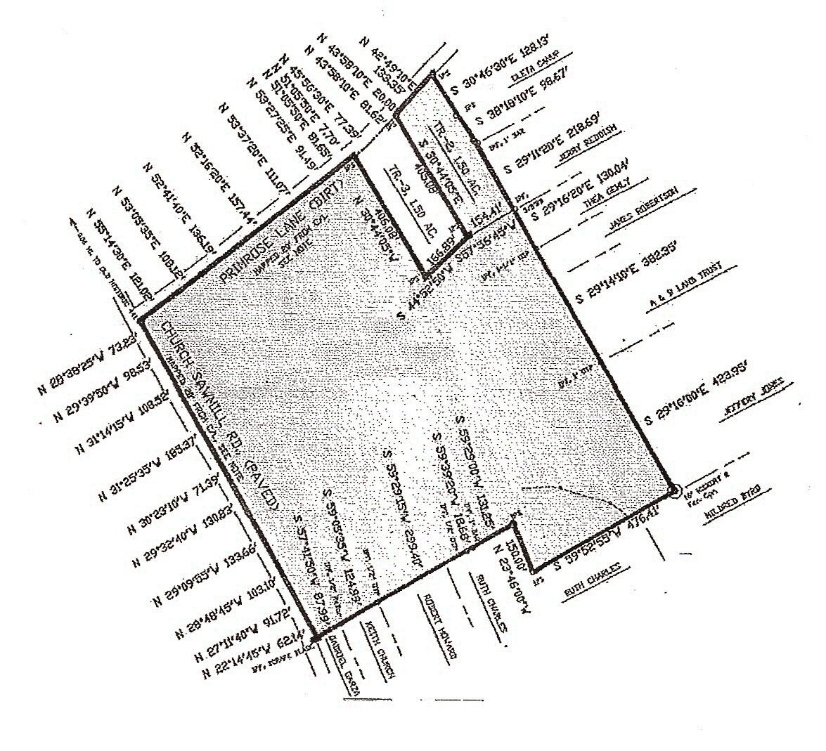 Long double road frontage on Church Sawmill Road (paved) and Primrose Road (gravel)