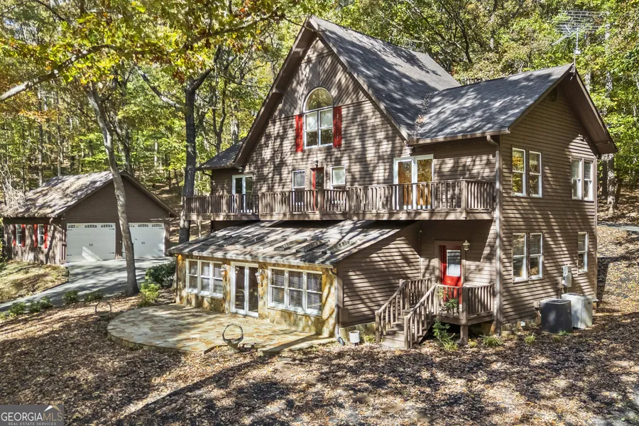 Adirondack-Style Lodge on 5 private acres. Bordering 2,000+ acres of Chattahoochee National Forest. Tucked away in the heart of the Northeast Georgia Mountains, this stunning lodge-style home offers the perfect blend of rustic charm and modern comfort. This property is a dream come true for outdoor enthusiasts, hunters, and anglers alike. Step inside to a sunken living room featuring natural stone floors, abundant skylights, and a warm, inviting atmosphere-ideal for relaxing after a day spent exploring the great outdoors. 4 bedrooms and 3 full baths ensure plenty of space for you and your guests. Enjoy your morning coffee out on the master bedroom balcony. Outside, a detached two-car garage with a large loft and power, affords the ability for a home gym or game room flex space. Two additional storage buildings provide ample space for gear, tools, and recreational equipment. Whether you'r...