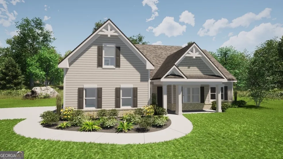 Under constructions! Escape to the peace and privacy of this stunning 20-acre property tucked away in a serene setting of rolling hills, mature hardwoods and breathtaking elevation changes. The Washington offers the perfect blend of rustic charm and refined living. This exceptional home has been thoughtfully designed with stunning architectural details and modern comforts throughout. The beautiful entry foyer welcomes you to this open and inviting floor plan. Shiplap in the living room and master bedroom both showcase ceilings accented with wooden beams, creating a warm and inviting atmosphere. A natural rock fireplace adds a cozy focal point to the family room, while a second fireplace on the covered patio invites year-round outdoor gatherings. The chef's kitchen is a dream, featuring upgraded soft-close cabinets, crown molding and tasteful finishes that continue into the adjoining living room. Relax in the spacious owner's suite, oversized closet and a spa-inspired bath. Double vanity, luxurious tile shower and flooring, rain shower head with wand and shower bench. Secondary baths feature steel tubs with tile surround. Practical touches include a spacious laundry room with tile flooring, a custom mud bench perfect for convenience, and an attached two-car garage with remote entry. Bronze fixtures and 2" faux wood blinds throughout the home. Whether you're watching the sunset from your back patio or enjoying the peaceful seclusion of country living, The Washington is more than a home-it's a lifestyle. A unique natural environment. Don't miss your opportunity to make this exceptional home yours! AMAZING INCENTIVES with one of our preferred lenders Casey Simmons, NMLS# 2303959 with Homeowners Financial Group / Corey Cantrell with Premier Mortgage Resources, NMLS # 202189 / Dave Mathews NMLS# 179927. Estimated closing date August 2025. Stock Images of the home.