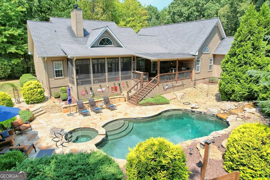 Experience mountain living at it's finest in this stunning 3 bedroom and 2.5 bathroom home nestled on 4.08 private acres. Located in the desirable Chattahoochee Glen Subdivision and offering large expansive lots inside the security of a gated community. The homeowners built the home over 20 Years ago and have lovingly maintained and meticulously upgraded this property throughout the Years where it counts. The main level features an open concept large living area complete with stone fireplace perfect for dinner parties and hosting guests. The dining area is flanked by a gourmet kitchen complete with cherry cabinets, granite counters, stainless steel appliances, large peninsula well suited for cooking, dining and entertaining. Three bedrooms on the main level with 2.5 baths and laundry room complete the main level. Upstairs one will find a large open room perfect for guests, playroom or office space. Step outside onto the all season screened deck, an amazing spot to dine al fresco, enjoy a book anytime of Year or watch the family as they enjoy the beautifully designed pool with attached hot tub. Adjacent is the grilling deck complete with a custom built in outdoor kitchen with additional seating for large gatherings. The exterior grounds are beautifully landscaped and include hardwired speakers to listen to your favorite music while enjoying the outdoors. Outbuilding offers additional storage. All this located in the security and prestige of a gated river community located one and a half hours north of Atlanta and conveniently located between Clarkesville, Helen and Cleveland.