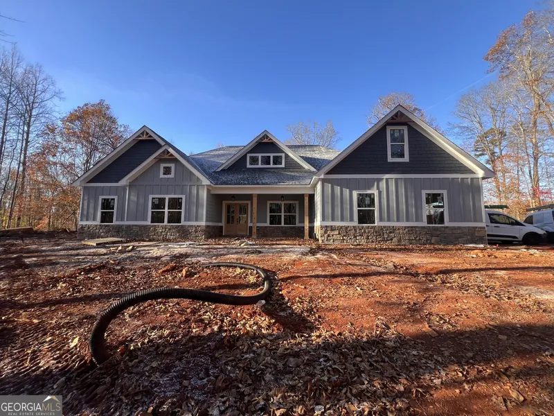 This beautifully crafted new 4-bedroom, 3-bathroom ranch home offers nearly 3200 square feet of thoughtfully designed living space, nestled down a long driveway on more than 3 peaceful acres in a private community. The beautiful double wood front doors welcome you into a home that offers elegance and comfort. The open-concept living area is centered around a wood-burning fireplace, creating a warm gathering space that flows seamlessly into a chef's dream kitchen. Quartz countertops, tile backsplash, and an oversized walk-in pantry -- truly a standout feature -- makes this kitchen both beautiful, functional and ideal for the entertainer. The mudroom with a built-in bench leads to a well-placed laundry room and finished bonus room. Each of the three bathrooms feature durable tile flooring and clean, granite counters, and modern finishes. An unfinished bonus room offers future flexibility for additional living or storage space. The spacious primary suite features an oversized tile shower, a pebble mosaic floor, dual shower heads, and glass door for a relaxing luxurious experience. A double vanity and a generously sized walk-in closet complete the space with style and practicality. The outdoor patio features a second wood-burning fireplace, providing year-round enjoyment, adding to the already tranquil setting found in the quaint community of Signing Tree, as charming 9 home site community just outside of downtown Clarkesville.