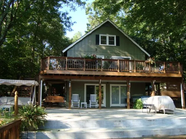 This is a delightful older lake cottage which has been recently upgraded with new windows and doors, carpet, paint and decking. A charming home with expansive deck and patio areas overlooking a sheltered cove in Hamlin Creek seconds from the main lake. There are three bedrooms and a sleeping loft to accommodate tons of people, large great room on the main floor and large rec room on the lower level. The kitchen is open to the great room, has an eating bar at the work island and there are two sets of atrium doors giving a good view of the water from this living area. The sandy beach is perfect for little kids, the single boathouse has storage and there are two jet ski lifts and deep water.