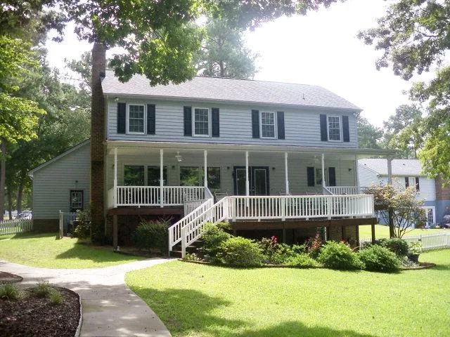 DESIGNED FOR COMFORTABLE LAKE LIVING! Whether full-time or vacation, this outstanding waterfront home is located in one of Lake Gaston's finest golf communities. Main level consists of formal living/dining, bedroom, full bath, foyer, lakeside den, dining area & kitchen. On the upper level is the master bedroom & bath plus 2 more bedrooms, hall bath & bonus room over the garage. On the lower level is a huge family/entertainment room w/ wet bar, office laundry & finished storage area w/ overhead door. 3 car garage, lots of closets/storage, vinyl fencing on lake side, double boathouse, jet ski lift, immaculate yard, paved driveway, irrigation system. Water at dock is 10' deep. Must see!