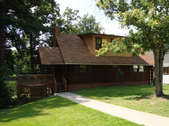This could be a really cute log home with a little creativity! The main floor has kitchen/dining area with woodstove, half bath and living room; with two bedrooms and a full bathroom upstairs. Downstairs is a bedroom combo with half bath plus separate shower and vanity. Part of the basement is workshop with garage doors which could be finished for second living area. Gently sloping L shaped lot with 160' roadfront has fruit trees and room for garden etc. Large deck overlooks the wide cove and new single boathouse with about 5' of water at end of boathouse and lovely sandy beach area.