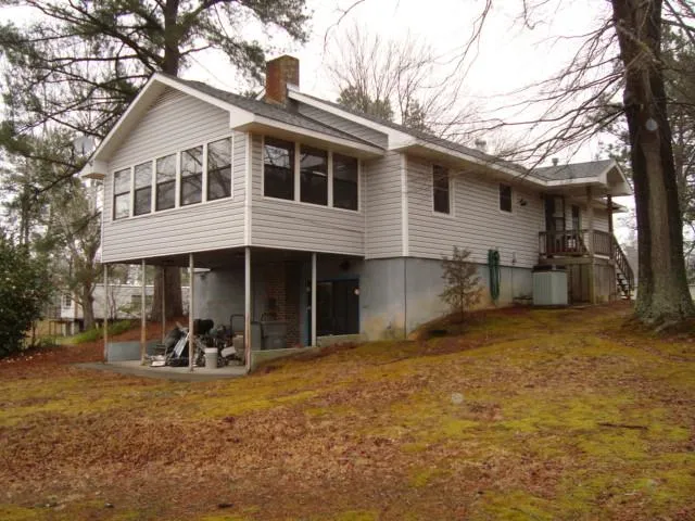 This could be a charming lake cottage with a little updating and there's plenty of room for an extra bedroom in the unfinished basement which is heated by a wood stove and has sliders to large lakeside patio. The home has an open great room with vaulted ceiling which includes a kitchen with lots of cabinets and eating bar, dining area and large living room which has sliders to a large sun room lakeside (unheated). There is a lovely, wide water view from great room and sun room and a very gentle slope down to the water. The waterfront is bulk headed with a block wall (nice to sit on and dip your feet in the lake!) and there is a 3 slip boat shelter which was built in 1968. Water is about 6' at the end of the dock. Upgrades are a new roof in 2012, recent vinyl replacement tilt-in windows in the home, new windows in the sun room and recent A/C unit. Quiet location close to Littleton.