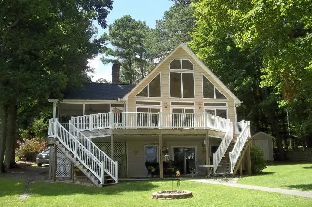 Great Waterfront Home Looking at Main Lake. Nice flat lot w/ nice walkway to single boathouse. The main level offers LR w/ FP, Kitchen, Dining Room and access to large lakeside sunroom with cathedral ceiling and large wall of windows for you to enjoy the lake. Upper level has 2 BR/BA. Full finished lower level family room w/ room for ping pong table, undesignated room & BA. Screened porch area w/ nice outdoor seating and hot tub. Large lakeside deck w/ lower patio area and outdoor shower. Outbuilding for addl storage. Deep Water. Located on Lake Gastons SE Quad. Approx. 15-20 minutes to Roanoke Rapids & I-95. All furnishings are negotiable w/ acceptable offer making it that much easier to enjoy Lake Gaston!