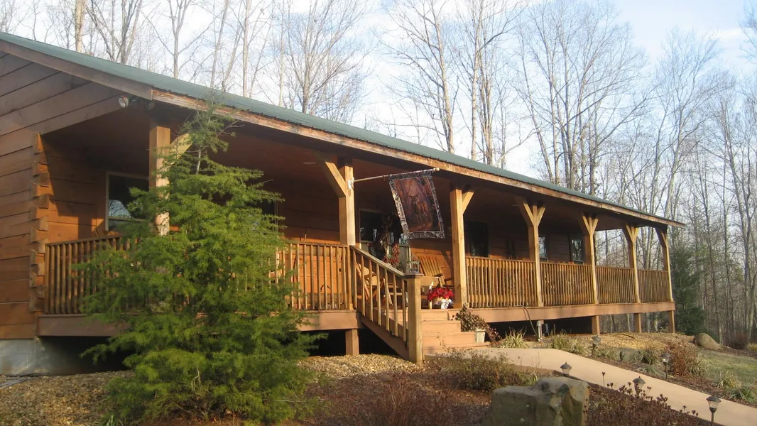 The tree-lined entry and driveway beckon you to 45+acres and a beautiful log home befitting a designer magazine. You will be captured by this custom designed 3 bedroom 2 bath log home. This retreat awaits the owner who appreciates quality, nature, and beauty in a private getaway. Built in 2008, this custom home is constructed of 6x12 Pioneer dovetail pre-treated wood and has 7-inch wide pine floors throughout. Additional custom features include a stone ventless fireplace, a baked enamel tin roof,Anderson energy efficient windows, 36 solid wood doors,and acrylic (strong)bath tubs. Heated and cooled basement has double walk-out doors. Expansive front and back porches with screened section create enjoyment outside that rivals the indoors.The landscaped grounds boast additional purchased acreage for a total of 45.91 acres consisting of hardwoods, 5 acres of planted pines, a pond & dock, babbling brooks and a meandering creek. The deer, turkeys, and other wildlife are beautiful to watch or to hunt. The storage building with 4 windows has a lean-to on two sides,abundant storage shelves, and a ceiling hoist. A 2013 survey provides clear property lines. 1.02 acres bought for entire pond.