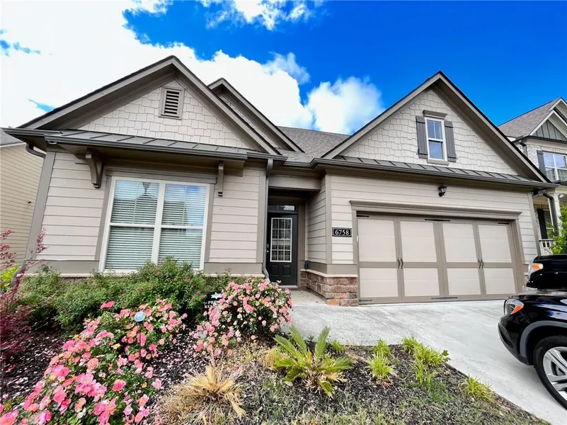Stunning Ranch floor plan in the resort living style community of Sterling on the Lake. Ready to move in, like brand new conditions with low usage, owners lived in the house for short periods. Relax and comfort with a perfect view from the covered back patio, partially fenced. Fresh stocked lake for fishing, kayaking. Activities and events for every age, 5 swimming pools, 8 tennis courts. This ranch floor plan offers overlooking great room with stone fireplace, opens to dining room and kitchen, huge granite island and countertops. Stainless Steel appliances, upgraded hardwood floor.