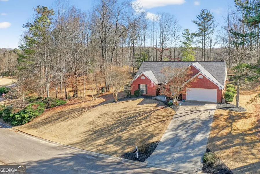 Beautiful Brick Ranch on Incredible, Private Lot! Upon entering, you'll discover an impeccably maintained home with soaring ceilings, new flooring and lots of natural light. Elegant dining room and inviting family room lead to bright and cheerful kitchen with large counter bar, stainless appliances, charming breakfast room with bay window, and cozy fireside keeping room. Owner's suite offers double trey ceiling, dual vanities, soaking tub, entrance to patio, and walk-in closet with built-ins. Oversized patio overlooks the expansive backyard with manicured lawn, mature hardwoods and firepit- a truly private sanctuary with plenty of space to entertain, explore, or enjoy morning birdwatching or a beautiful sunset. New roof and gutters, plus fridge, washer and dryer included in purchase! Situated in the cul-de-sac of a quaint neighborhood with well-maintained homes and no HOA. Convenient location, close to charming downtown Flowery Branch, Lake Lanier, shopping, dining, parks and I-985! Start the new year off right and make this move-in-ready gem yours!