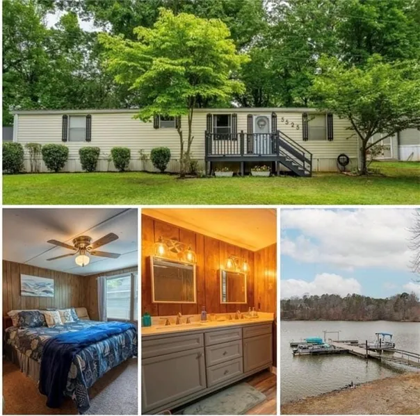BACK ON MARKET AT NO FAULT TO SELLER! Welcome to your lakeside escape! This cozy, well-maintained mobile home is nestled in a serene gated-lake community, offering stunning seasonal views, peaceful surroundings, and endless recreational opportunities. Situated just steps away from the shimmering waters of Lake Sidney Lanier, enjoy fishing, boating, kayaking, paddleboarding, or simply relaxing by the shore. The community features a clubhouse, picnic tables, tennis courts, a community dock with boat slips, and organized events for residents. This home features 3 bedrooms with spacious closets, providing plenty of space for family or guests, 2 full bathrooms with modern fixtures, a fully equipped kitchen with updated appliances and a gorgeous butcher's block countertop. Enjoy morning coffee or evening sunsets on the expansive deck area. Your move-in process has been simplified with fresh pa...