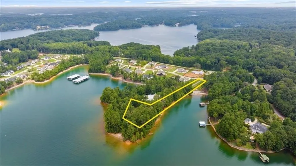 Positioned within the sought after Bay Pointe community, this extraordinary 1.51 acre lake lot with a Private driveway, Gated access and fence, offers an unrivaled setting for your custom estate. Surrounded on three sides by water, with more than 1200 feet of pristine shoreline, a Corps of Engineers walking trail and sandy beaches. the property combines natural beauty and panoramic views with exclusivity and privacy. From sunrise reflections to sunset horizons, every vantage point captures the essence of luxury lakefront living. With a build-ready homesite, you have the rare opportunity to create a residence tailored to your lifestyle-whether it's a contemporary retreat with walls of glass, or a timeless lakefront sanctuary. This is more than a lot; it's the canvas for your legacy on the water. Deeded 12 X 28 boat slip, on Dock A, slip 22, provides an easily accessible position. The Community Dock has water and power, and is golf cart accessible. Quick access to Atlanta via I-985/I-85. Water and electric are on site. Septic needed. House plans are available upon request. Don't miss this opportunity to own your private paradise. Weissman is the preferred closing attorney.