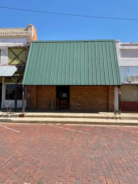 This office building is located on the east side of the square in downtown Memphis, Texas. The front 1,250 sf (per HCAD) has drop down acoustic ceiling tiles, large private office, space for three additional desks or two desks and a conference table with ample room for filing cabinets, etc. There is a large break room with sink, hot water heater and refrigerator water line, as well as one restroom. The back 1,250 sf (per HCAD) is storage with the original ceiling tiles still intact. A double metal carport located in the alley conveys.
