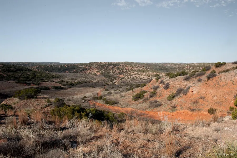Terrain: The terrain of the Hudson-Bell Ranch is primarily rugged Caprock Breaks and Palo Duro Canyon type country. The ranch is drained by two prominent canyons. Lost Mule Creek bisects the center of the ranch, draining in a south to north direction.