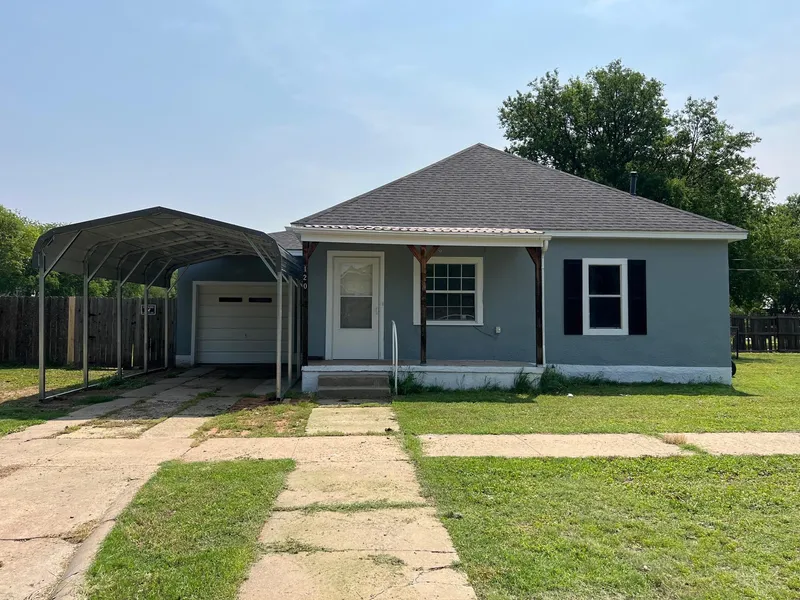 Come take a look at this cute bungalow home. Very nice interior finishes with hardwood floors and checker board tile in the kitchen. Kitchen comes complete with a dishwasher, range, and refrigerator. Home has central heat & air. There are 2 bedrooms and a possible 3rd bedroom (but no closet) and a full bath that has been recently renovated. Single car attached garage with an additional carport. Fenced yard. Large corner lot that also has a really nice 540sf metal barn with electricity.