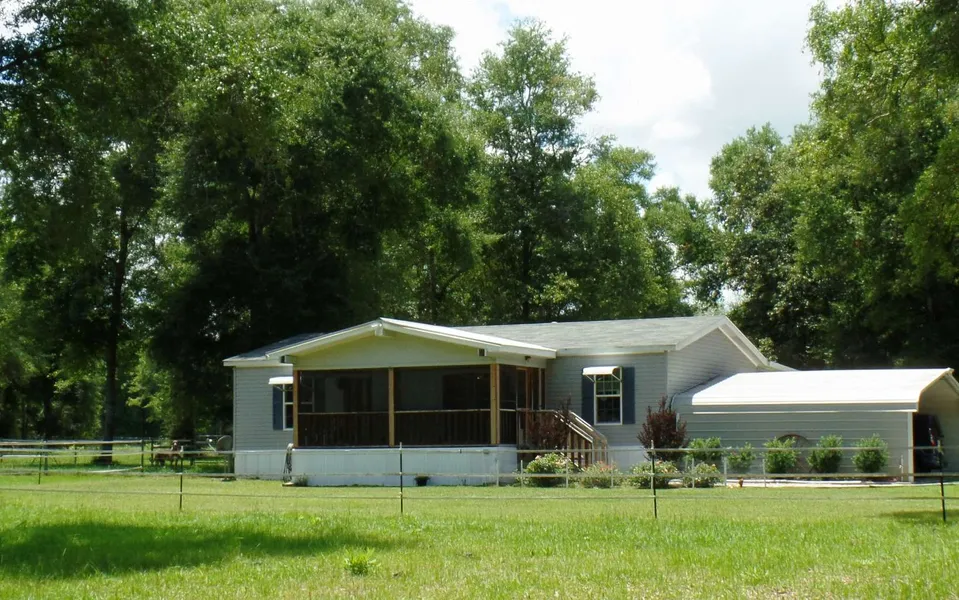 Horse lovers dream! This very well cared for home sits on just over 5 acres of fenced pastures and just the right amount of woods to give loads of privacy. Located near a popular horse camp, this home's many features include a barn/stable/tack room with water and electric, a fully functional workshop,an rv port, a cottage with small kitchen area and studio type accommodations, storage shed, very spacious 3/2 2016 mobile home with custom front and back porch, and a nice 2 car carport. Too many features to list. Peaceful, country living with boat ramps to the Withlacochee near by.