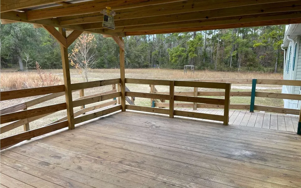 Spacious 1,820 sq ft double-wide manufactured home on 10 acres just north of Lake City, FL, offering plenty of room to spread out and space for an additional residence. Ideal for those seeking privacy, flexibility, or future expansion. The home features a large kitchen and an open living area with a fireplace, perfect for gathering. The oversized primary suite includes two full bathrooms separated by a walk-through closet, providing comfort and privacy. Fresh interior paint throughout adds a clean, updated feel. Enjoy outdoor living with a covered front deck with ramp access and a back deck overlooking the property. A metal roof and two metal outbuildings add durability and functional storage. Conveniently located with easy access to I-10 and I-75, and just minutes from Lake City amenities.