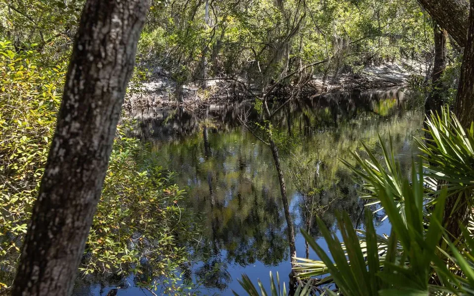 Great camping and recreational lot on the upper Suwannee River - North of White Springs and not far from Big Shoals. This part of the river is popular with kayakers and canoeists. This is in an interesting and scenic neighborhood of other river camps and recreational lots surrounded by several hundred acres of water management owned land. Very secluded and near the very end of a long winding dirt road. Existing screened platform and an older camper of no value. With some work this property could be a great private getaway for you. Seller recently had a lot of the palmettos mowed and property opened up. Please do not use stairs at the river as they're missing a step and are hazardous. There is no electric power in this area. A copy of a survey is available.
