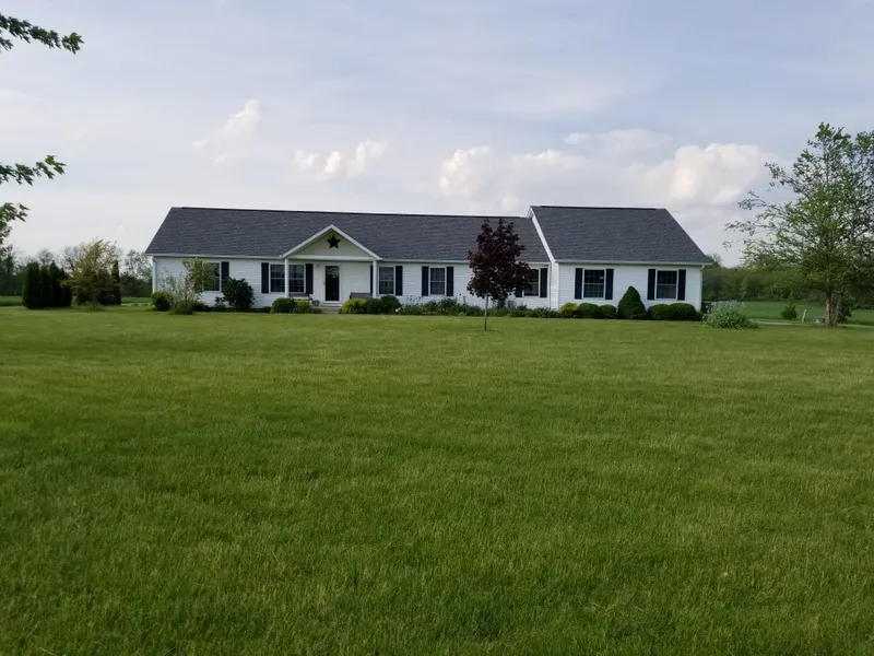 Very nice 3 bedroom modular home with 3 car attached garage. Full unfinished basement, lots of space, and screened in porch with great view. Well maintained home in great location, and flexible acreage. Farm has rolling acreage with a creek, woods, and scenic building spots. Hard to find this type of overlook of water and woods. Tillable ground provides income, and property has 2 storage barns.