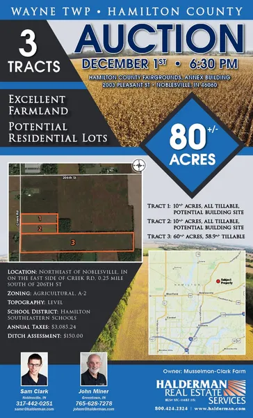 Auction Location: Hamilton County Fairgrounds Annex Building: 2003 Pleasant St, Noblesville, IN 46060