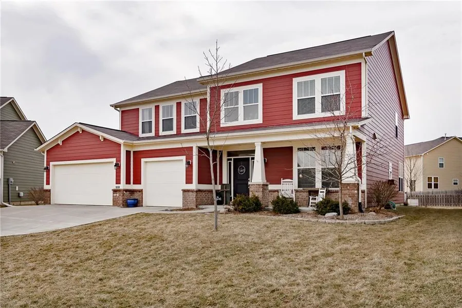 You will fall in love at the front door with this spacious home located in Chapel Woods. The heart of the home is the gourmet kitchen complete with gas cooktop, double ovens, tons of cabinets & counter space, center island and huge breakfast bar! The kitchen is open to large Great Room with gas fireplace. A main floor bedroom with attached bath makes a perfect guest suite, play room or office. Dining room and family organizer area complete the first floor. Upstairs has a spacious Master Suite with lovely bathroom and large walk in closet. 3 additional generous sized bedrooms with walk in closets, loft space and laundry room. The back yard offers a stamped concrete patio, great for entertaining. All of this on a great cul-de-sac lot.
