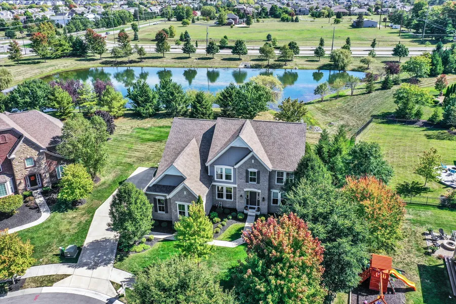 Super clean 5-bedroom, 4.5 bath two-story on a great cul-de-sac lot. Tons of upgrades in this Fischer home. Nicely appointed office and dining room flank the front door. Spacious family room with vaulted ceilings and a custom fireplace. Gourmet kitchen, with center island, upgraded SS appliances (all stay) with oversize pantry, kitchen nook. Custom, laundry room, and mudroom, just off the kitchen. Basement was finished out in the last few years and was done right! Theater area, custom bar with stainless steel appliances just around the corner! Perfect for entertaining. Guest bedroom (5th BR) & full bath. Beautiful setting with east facing backyard overlooking the water. Lakeside Park has tons of amenities.