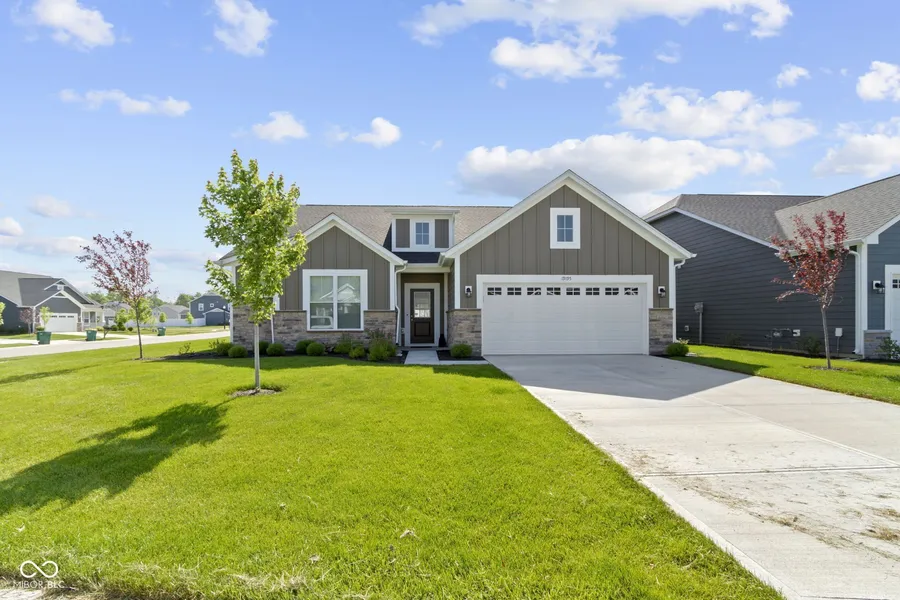 Located at 19195 River Jordan Dr this single-family residence in Hamilton County presents an attractive property in great condition. This low maintenance house is patiently waiting for its next occupant to add their own personal touch. Landscaping is included with the HOA dues each month making for even less routine maintenance than normal. The kitchen is designed as a central gathering space, featuring shaker cabinets that provide a touch of classic elegance; the large kitchen island offers plenty of room for meal preparation or casual dining, and the kitchen bar provides additional seating and serving options. The open floor plan allows for a seamless integration of the kitchen with other living areas, making it ideal for both daily living and entertaining. The bathroom is a haven of relaxation, with a double vanity providing ample space and convenience. This property offers a laundry room, adding practicality and ease to your daily routines, and is situated in a residential area, providing a peaceful and inviting environment. The huge lot complements the well-maintained living space, giving you room to breathe and enjoy the outdoors. Built in 2023 and spanning one story, this 3-bedroom home is more than just a residence: it's an invitation to experience life at its finest. The seller is leaving all appliances which are almost new including the water softener. Room sizes are estimates.