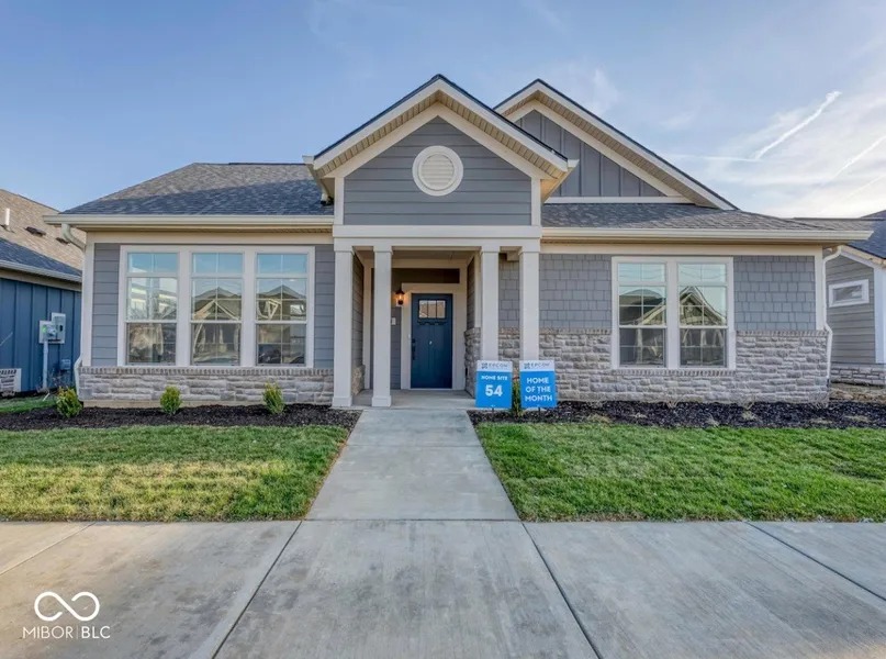 Welcome to a lifestyle of luxury and convenience crafted by Epcon Communities! Nestled in the prestigious Courtyards of Carmel, this stunning residence offers the perfect blend of low-maintenance living and modern comfort- 3 bed/3 bath, sunroom, 2.5 car garage, zero step ranch design. Courtyards of Carmel is a serene escape, ideally located just minutes away from Downtown Carmel, The Monon Trail, Hagan Burke Trail and easy access to Keystone and I465. Enjoy resort style, low maintenance living- no more yardwork or snow shoveling- enjoy community amenities including clubhouse, fitness center, pool, pickleball, bocce ball, community garden and more! This design boasts generous living spaces including 3 beds/3 baths, sunroom and bedroom suites providing ample room for relaxation and entertaining. Epcon's signature private courtyard, viewable from all major areas of the home, allows for an indoor/outdoor lifestyle. Luxury finishes throughout including the deluxe kitchen- a chef's delight featuring GE appliances, stylish cabinetry, quartz countertops, open to dining and a light filled view to the private courtyard. Retreat to your own private oasis with a lavish ensuite bathroom and spacious walk in closet. 3rd bedroom upstairs allow for the perfect private getaway for you, friends or family. Experience not only the private courtyard, luxury finishes and light filled home- but enjoy the livability of your home now and years to come with wider halls and doors, zero steps into the home, zero step owner's shower, extra framing for grab bars, handheld shower and more. This is a 55+ community.