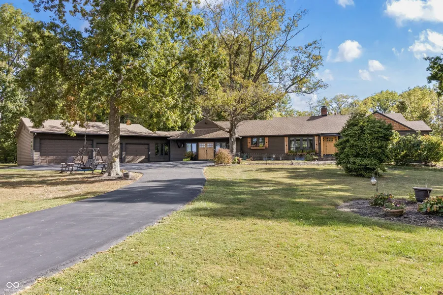 Welcome to this rare 3,000 sq ft immaculately maintained Ranch with basement nestled on 4 acres along the Noblesville/Westfield border-where country living meets city convenience. A long, picturesque driveway leads you past a pond and mature landscaping to this private retreat with no HOA, giving you the freedom to expand, build, or customize as you wish. Inside, the home offers 3 bedrooms, 2 full baths, and multiple living spaces designed for both relaxation and entertaining. The cozy family room features a warm fireplace, while the spacious great room is equipped with surround sound, projector, and screen-perfect for movie nights or game days. The partial finished basement provides a versatile space for a playroom, home office, or hobby room. The morning room opens to a back porch overlooking the wooded property-ideal for slow coffees or evening cocktails while enjoying the view. Car enthusiasts and hobbyists will appreciate the 4-car garage plus attached workshop, offering space for vehicles, tools, or projects. With no HOA restrictions, this property is a blank canvas: add on, build up, or simply enjoy the privacy and freedom of country living. All just minutes from Grand Park, Chatham Hills, downtown Westfield, and only 15 minutes to Carmel with its shopping, dining, and entertainment. Opportunities like this are rare-don't miss your chance to own a private, wooded retreat with room to grow in one of Hamilton County's most desirable locations.