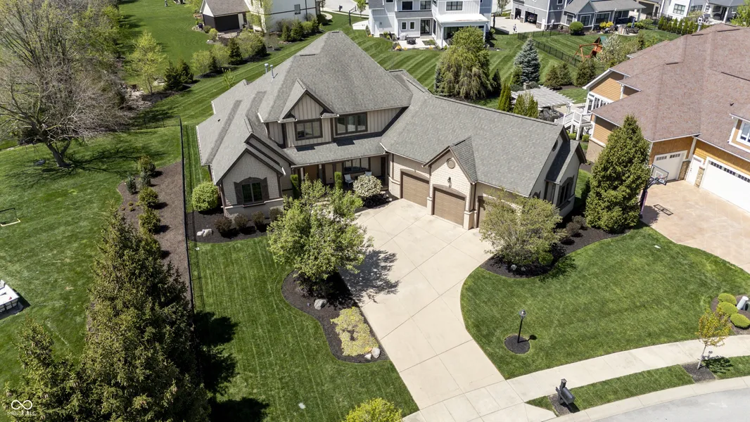 Nestled on a generous lot in prestigious Brooks Park in Fishers, Indiana, the single family residence at 10138 Backstretch Row presents an attractive property in excellent condition. This home offers a perfect blend of luxury, functionality and comfort. Newly painted exterior, with updated new carpet in the home. The kitchen serves as a culinary centerpiece, showcasing stone countertops that provide an elegant and durable workspace, while shaker cabinets offer ample storage, enhancing the room's sophisticated aesthetic, and a custom range hood makes a statement above the stovetop. A large kitchen island anchors the space, providing a gathering spot and additional prep area, complemented by a kitchen bar for casual dining or entertaining. The double oven caters to ambitious culinary endeavors, and a backsplash adds a touch of artistry, protecting the walls and enhancing the room's character. The main-level, primary bedroom offer a private retreat distinguished by a tray ceiling and crown molding, creating an atmosphere of refined elegance, and this bedroom includes an ensuite bathroom for added convenience and privacy. The bathroom provides a spa-like experience, featuring a tiled walk in shower that invites relaxation and rejuvenation, and a double vanity that offers ample space for personal care. Each additional bedroom offers spacious functionality. This home offers a cinema room and provides a dedicated space for immersive entertainment experiences. All items for the theatre stay. The property sits within a residential area and offers a porch for enjoying the outdoors. Five bedrooms and four full bathrooms, along with one half bathroom, ensure ample space for all. The walk-in closets provide generous storage for an organized wardrobe. With over 6600 square feet of living area, this three-story home, constructed in 2010, provides both space and modern comfort. This thoughtfully designed floor plan offers exceptional spaces for entertaining and everyday living.