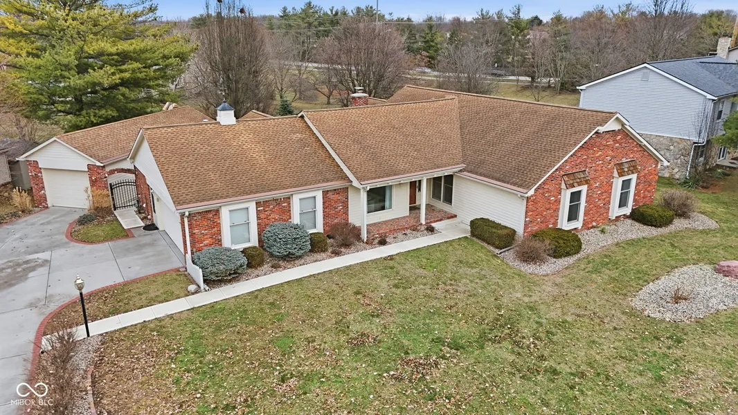 This classic, custom ranch has been transformed into the bright, modern & cheerful single-story HOME OF YOUR DREAMS! In the past year, the kitchen has been gutted, opened to the family room & thoughtfully reinstalled. Paint, light fixtures & hardware have been refreshed. White Oak hardwood flooring has been installed alongside lush new carpet in the BRs. All of this has resulted in a beautiful, move-in-ready home w/ benefits not usually found in this price point! The detached garage w/ workshop will suit your extended cab p/u (21' deep), AND the unique storage bay w/ overhead door, built into the rear of the house, is perfect for mowers, patio gear or as a storm shelter. Not only is there a picturesque covered front porch for the ferns & rocking chairs, but there is also an enclosed sunroom that overlooks the fenced yard and wrap-around deck (with SunSetter awning). Sometimes when you see a home that has 4 bedrooms, you expect them to be small, but not here! The primary is huge @ 18x13, and the smallest of the other three is 13x11, so everybody in the household will LOVE their personal space. The primary bath includes dual vanity sinks, a large jetted tub, a tiled walk-in shower and TWO walk-in closets. And the formal living room w/ French doors is well-sized for use as an office or home schooling room. The HVAC was replaced in 2024, new reverse osmosis system in 2025; the roof has a clean bill of health, the chimney has been restored, and the full-brick wrap is the ultimate in low maintenance exteriors. This is a one-of-a-kind opportunity in Carmel. Perhaps it is the unicorn you've been hunting?