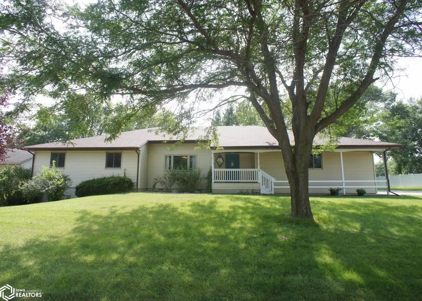 Very well-built, creatively designed custom ranch with 2,096 sq ft and a full poured basement. Heated 3-stall garage (26x40) with utility sink; third stall set up as a woodshop. Cabinets, shelving, workbenches, and pegboard all stay! Spacious vaulted great room with custom 3-sided gas fireplace dividing living and dining areas. Front living room features built-in shelving and double coat closets. Dining room opens to triple sliding glass door that opens to a 16x15 deck with built-in planter. Spacous kitchen open to dining area offers corner pantry, pull-out shelves and 2 lazy Susans. All appliances stay! Bright 9x25 sunroom overlooks beautiful backyard. Three main floor bedrooms, plus a 4th with egress and 3 closets in basement. Full bath off hallway includes main floor laundry (washer/dryer stay). Primary suite has walk-in closet, 3/4 bath, and two linen closets. Basement has multiple egress windows, lots of light, freezer, fridge, shelving, and workbenches-all stay. Brand new roof in 2025! Must see to appreciate the value!