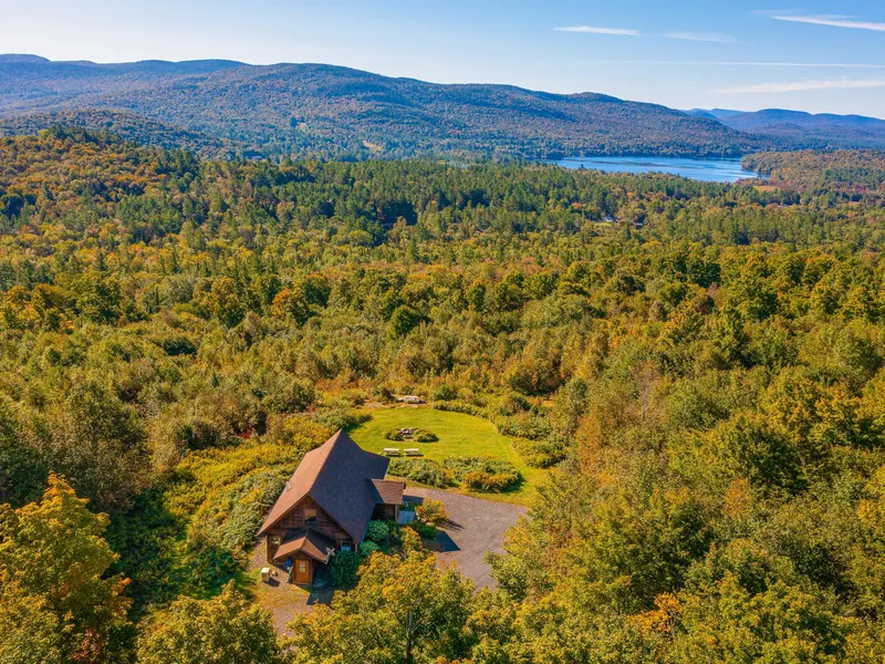 This private year-round Adirondack cabin offers a view and experience like no other in Long Lake. The panoramic views change on a daily and seasonal basis offering a true oasis that is still close to town. It has one of the most majestic views in the Adirondacks. The cabin has three bedrooms including a loft bdrm. There are two full bathrooms, an open kitchen and dining space area that is connected to the living room. The dry basement offers storage, as well as the opportunity for future living and/or bedroom spaces. The covered porch is a tranquil space for morning, afternoon, and evening gatherings. In the morning you can watch the sun rise and the fog lift; in the afternoon you can enjoy the direct sunshine, and in the evening you can enjoy the sunset and the stars. At any time of day you can enjoy the wildlife that surrounds the cabin in its secluded and wooded location. The lawn are...