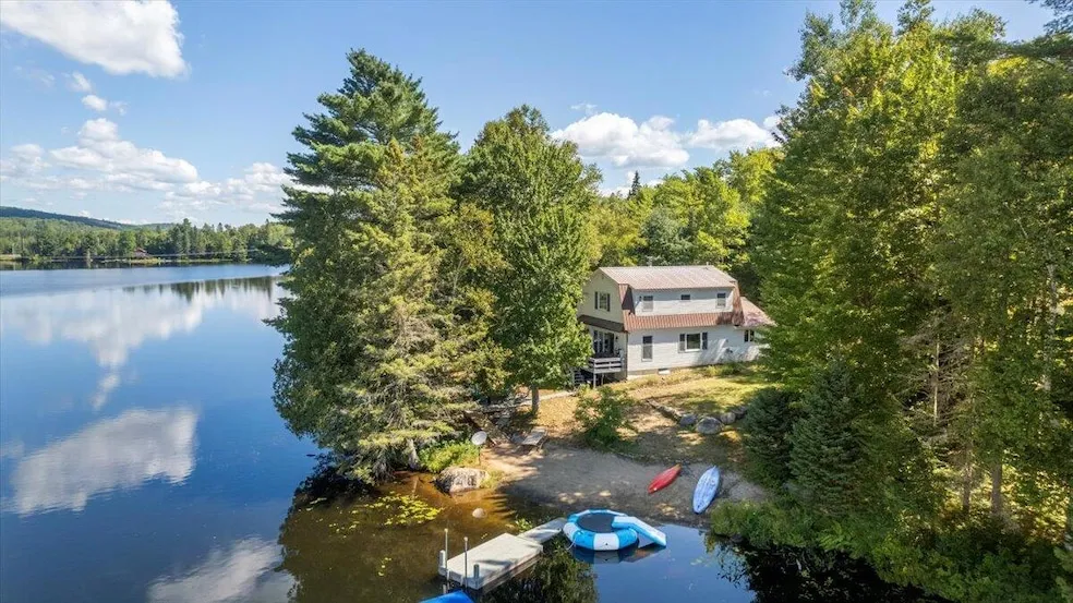 Water's Edge - This 3 bdrm, 2 bath home with 310 feet of shoreline on Lake Abanakee comes complete with a sandy beach and private dock. Living room features 180 degree lake views, wood floors, and woodstove with hearth. Recent updates include new roof, new septic tank, whole house generator, updated kitchen, wood ceilings, circular drive, and reliable satellite internet. Located on a small peninsula with multiple decks overlooking the lake and the 3+ acre lot spans both sides of the road. Additional amenities included an oversized 2 car garage with loft above, woodshed and storage shed.