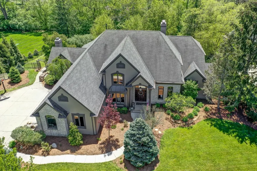 Luxury living featuring soaring vaulted ceilings, lovely 1st flr master ensuite, walk in closets & upscale fixtures. Hardwood flrs throughout, open kitchen with butlers pantry to formal dining, wall tiled coffee bar. 4 seasons solarium, sunken great room & various walkouts to deck. Fantastic finished LL with fireplace, fitness rm & wine cellar!