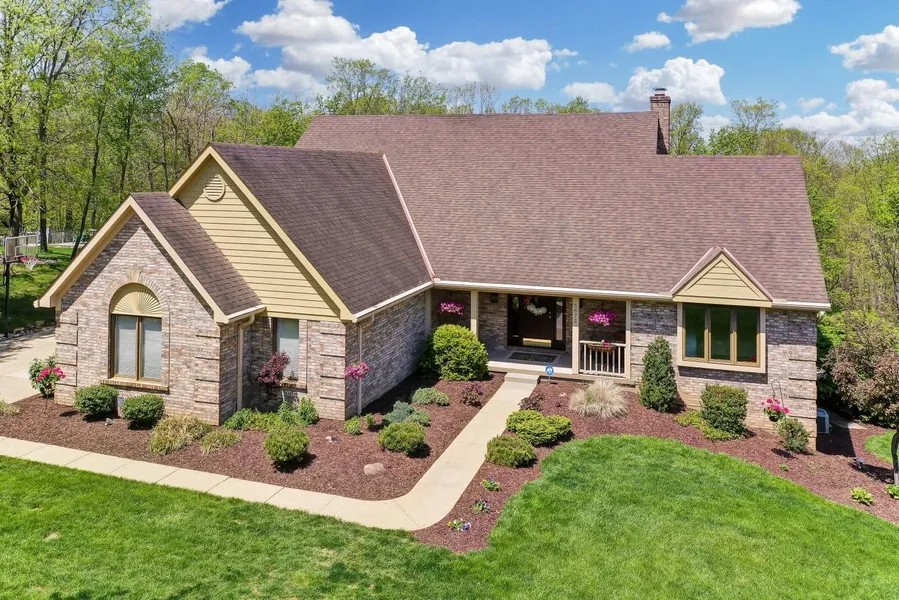 Beautifully updated two-story living on a private 1 acre wooded lot. First flr en-suite w jacuzzi tub & double vanity. Hardwood flrs & cathedral ceilings throughout first level. Finished lower level w wet bar, rec rm, study & full bath. Spacious fenced in backyard & in-ground pool. Oversized two-car garage. 2 new gas fireplaces. Remodeled kitchen w new appliances, kitchen tile, granite countertops, & backsplash. New HVAC & fresh paint throughout.