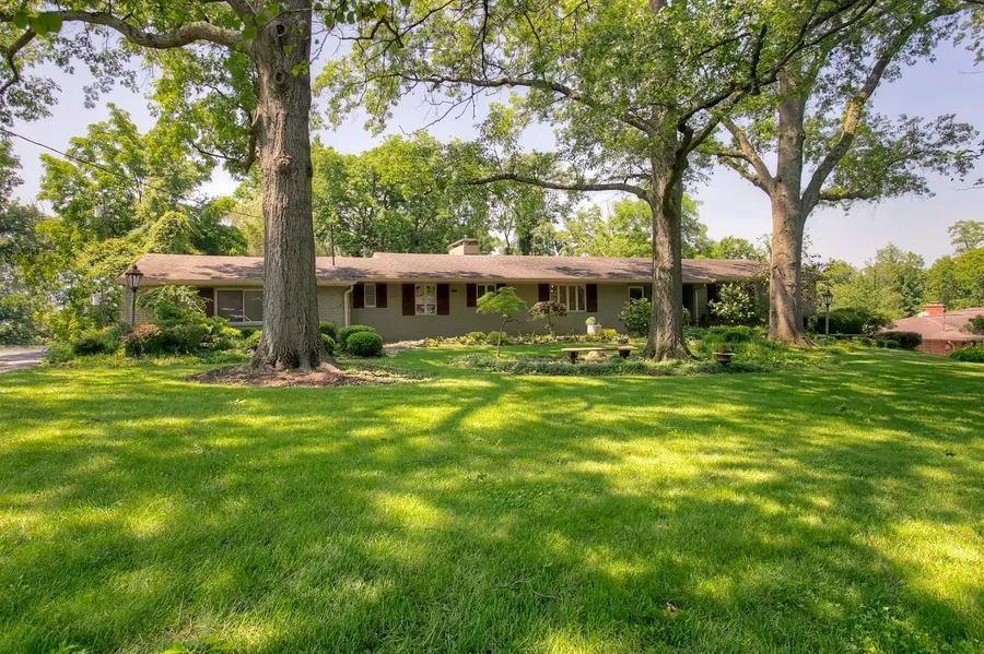 Updated Mid century modern with an open floor plan and walls of windows to enjoy the wooded views! Located on a quiet cul-de-sac this brick ranch has a built in pool, screened porch, 3 sided fireplace and 137" home theater. Hot water heater and furnace 2021, kitchen appliance 2020 and brand new carpeting.