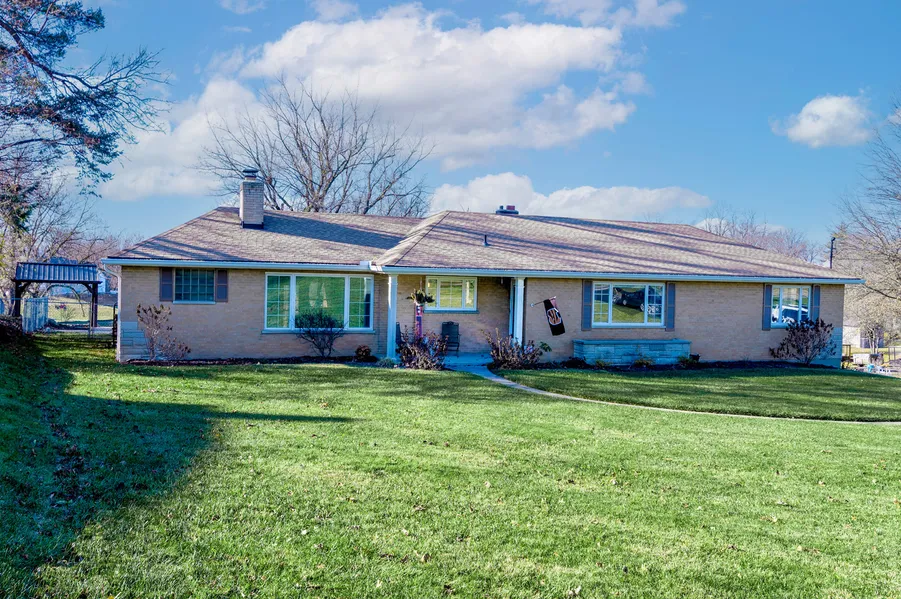 Welcome home to this picturesque brick country ranch situated on almost 1.5 acres! Beautiful hardwood flooring, fresh paint, newer carpet & LVP, completely renovated bathrooms (down to the studs!), spacious kitchen w/ large eat-in island, 2 fireplaces, 1st floor laundry and incredible views from every window! Finished walkout lower level, fenced yard, patio and 2 attached 1 car garages, 32ft X 26ft pole barn, plus a detached garage with loft! Newer windows, Roof (1 yr), Hot Water Heat and AC (5 yrs). Impeccably maintained and absolutely nothing to do but move in!