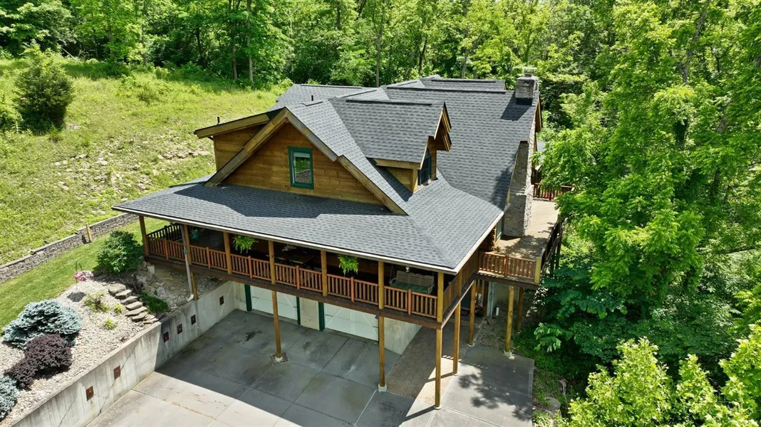 At last...a place you can call home yet feels like you are living on vacation! Located just 20 minutes from downtown, this 4 bedroom, 3 bathroom log cabin home sits on a 5 acre parcel and offers a rare slice of tranquility and adventure. Imagine sipping your morning coffee on the wraparound porch while reading books with these panoramic, Gatlinburg-like views. Upon entering, imagine holidays with family the great room that connects to the eat in kitchen. Have friends over for dinner and then slip into the new hot tub under the covered porch. Spacious bedrooms (1st floor primary bed and laundry) provide options for the kids, guests or a home office. Home gym in the basement! The oversize garage has room for two cars and additional toys. The second driveway is the perfect spot for the boat, RV or 2nd garage. New roof, exterior stain, covered patio and kitchen/driveway upgrades since purcha...