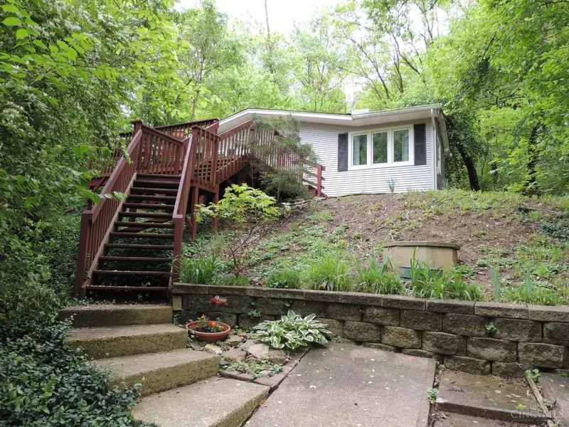 Home needs foundation work and is being sold as is. 3rd party bank approval will be required. Forest Hills Schools! Why rent when you can own this super sweet, cottage! Recent updates include brand new heat pump and HVAC, stackable washer/dryer, dishwasher, laminate flooring in all bedrooms, new motor, lines, and electric to septic, and beautiful wood front door. Private wooded setting, large deck, rear patio/deck area, and insulated shed for additional storage. Minutes to 275, Riverbend, Belterra and NKY.