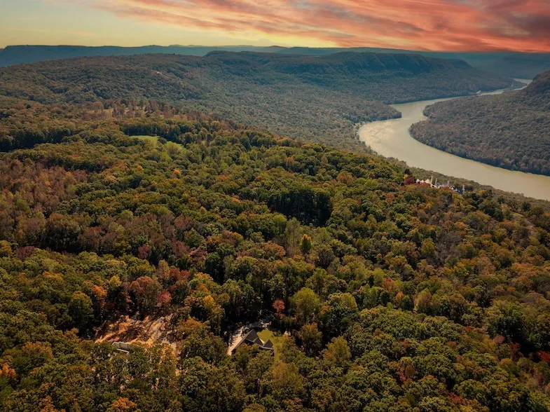 Welcome to Elder Mountain, one of the Chattanooga area's most prestigious communities. Nestled within a picturesque neighborhood, this custom-built home sits on over two acres of meticulously manicured grounds, surrounded by tree-lined streets and mature landscaping. This stunning residence offers a unique blend of elegance and craftsmanship. With coffered ceilings, stately columns, and exquisite moldings, every corner of this home reflects custom design at its finest. Upon entering through the grand glass double doors, you're immediately drawn to the expansive windows that frame breathtaking views of the outdoors. The open and flowing floor plan includes a welcoming great room with a dining area, a cozy family room with walls of windows, and a chef's kitchen that's as functional as it is beautiful. The thoughtful layout also features a luxurious primary suite with its own spa-like bathroom and dressing room. Additionally, three more spacious bedrooms are located on the main floor. Upstairs, a flexible space with it's own half bath awaits, perfect for a game room, guest suite, or whatever best suits your lifestyle. Pride of ownership is evident in this impeccably maintained home including a new Trane HVAC system, new hot water heater, and incapsulated crawl space with dehumidifier! Just 20 minutes from vibrant downtown Chattanooga, Elder Mountain seamlessly combines serene living with city proximity.