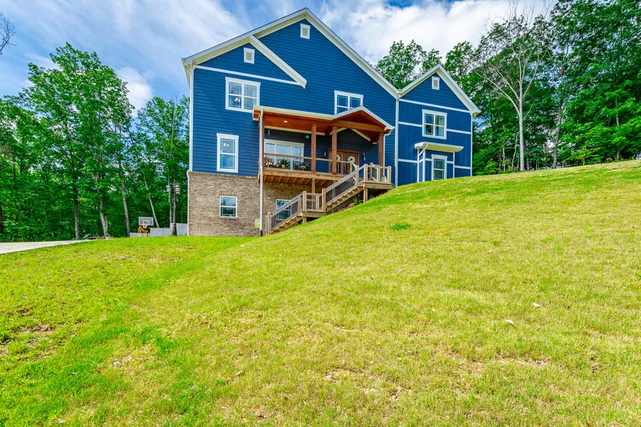 This incredible three year old home is the one for you if you are looking for loads of space! With 3,800 square feet of beautifully appointed home plus 2,200 unfinished on almost three acres, you'll have lots and lots of room! An open flowing floor plan welcomes you and your friends and family into a great room with soaring ceilings, gas log fireplace with shiplap and beautiful wood flooring throughout the main level. You will not believe it, but this kitchen has brand new custom cabinetry just installed in April! The quartz countertops, gas cooktop and wall oven make this a chef's dream, not to mention the heart of the home where everyone will gather. Plus, what a pantry/laundry room! You have so much space for food and everything you want to store away when it is not in use. The nicest office is tucked away on the main level, along with a powder room for guests. Also on the main is an extra spacious primary bedroom with ensuite featuring a private entrance to the covered back porch and the bath showcases the prettiest claw foot tub, separate vanities, separate shower, water closet and large His and Hers closets. Upstairs, you will find four more sizeable bedrooms, all with extra large closets and two Jack and Jill bathrooms and a pretty catwalk to connect them and an additional laundry closet for convenience. Car collectors, car lovers and hobbyists are going to completely love the basement area where there's space for seven plus storage. Poured concrete walls and loads of storage space. Easy turn around parking. In back is a large, lovely covered deck with a vaulted tongue and groove ceiling that overlooks a level yard for playing. An almost three acre lot provides the owners with privacy. LP Smart siding, tankless water heater, gas heat on the main and heat pump upstairs, both with Nest thermostats, and wired for a hot tub at the back patio. You will feel like the king or queen of the hill sitting at this pretty covered front porch!